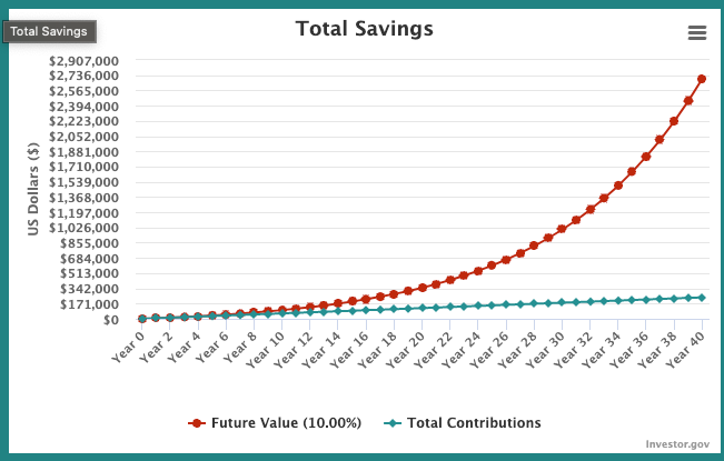 This compounding occurs when no additional money is invested. But in practice, people invest money that they earn every month. This only leads to the acceleration of wealth creation. To give you context, let’s say that your initial investment is $1000, and monthly you invest $500 at 10% return. The rate of return for the S&P 500 for the past 50 years is 10%. Could you guess how much money you would have made in 40 years? 100,000? 500,000? The results might shock you.